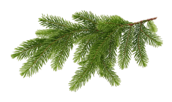 Fir tree branch isolated on transparent background, perfect for christmas decoration and winter holiday themes