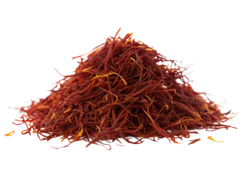 A Pile of Dried Saffron Threads on a White Background