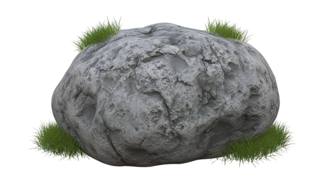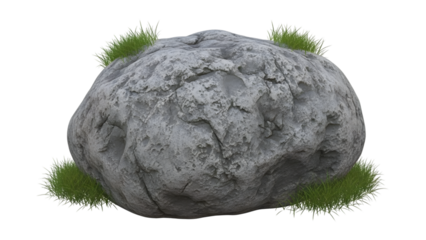 Large gray rock with green grass isolated on a transparent background large rock stone boulder