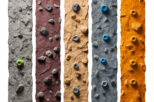 Set of grips different colors and shapes for climbing wall Isolated on Transparent or White Background