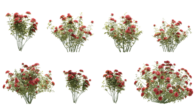 Set of rose trees isolated, 3D rendered