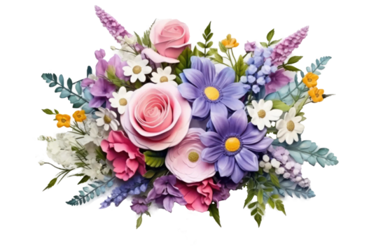 beautiful and elegant flower arrangement or bouquet of colourful flowers isolated on transparent background.