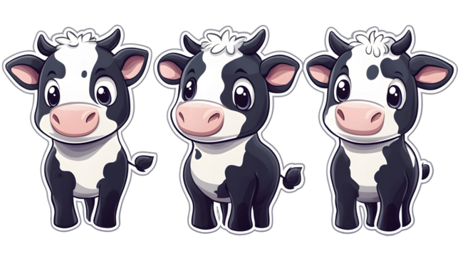 Portrait of a cow isolated on a transparent background, cow clipart  sticker pack