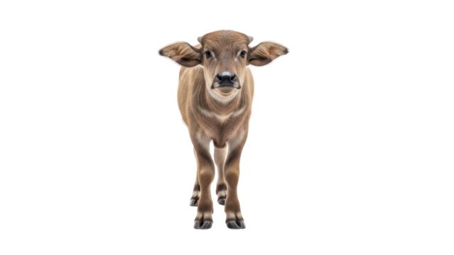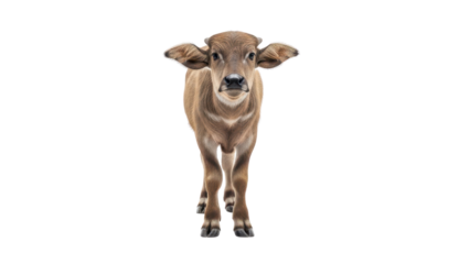 Cute Young Brown Calf Standing and Looking at Camera isolated PNG with Transparent Background