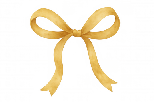 Golden watercolor bow with a transparent background, tying gifts, decorating presents, and celebrating special events