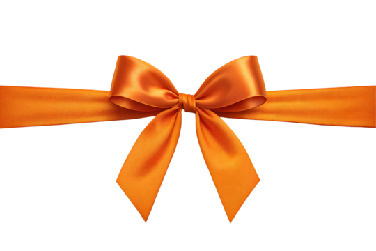 Powerful vibrant orange satin ribbon bow tied on transparent background, clean, polished design, symmetrical loops, HD, 4K, stock photo image, PNG, transparent background, download.