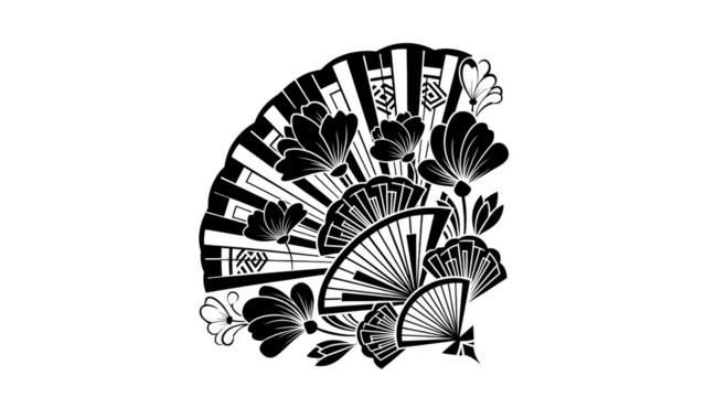 Outline drawing of a large decorative gift bow with trailing ribbons