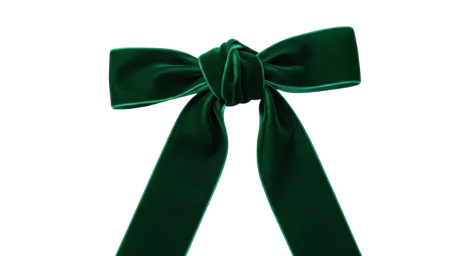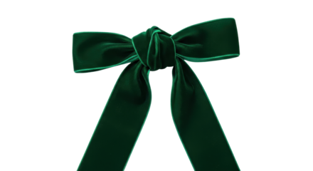 Emerald green velvet ribbon tied into a bow isolated PNG with Transparent Background