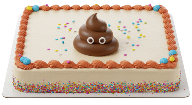 Brown Poop Emoji Decorated, Sheet Cake Baked Bakery Dessert with Icing,  Isolated Transparent PNG