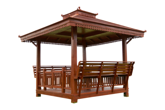 Wooden pavilion, a large living for relaxing isolated on white background.
