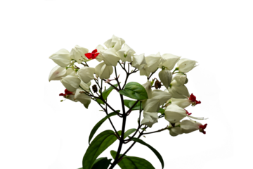 Bleeding heart glory bower flower in bloom in a combination of red and white ivory
