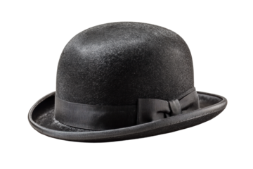 Stylish Black Bowler Hat with Rounded Top Ideal for Fashion and Costume Events or Classical Themes.