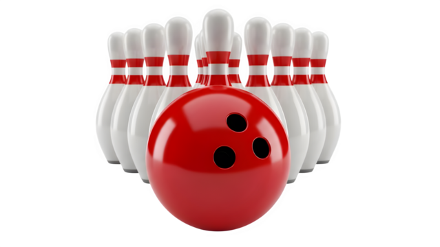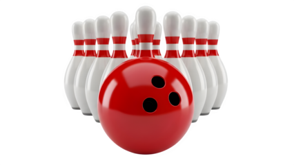 bowling ball hits bowling pins isolated on white background. PNG.AI GENERATED