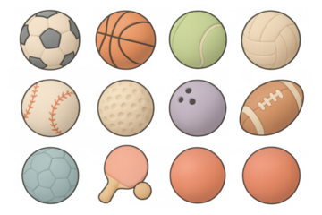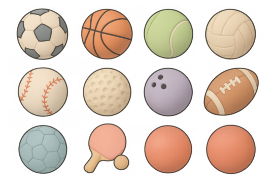 Sports balls collection isolated on a transparent background