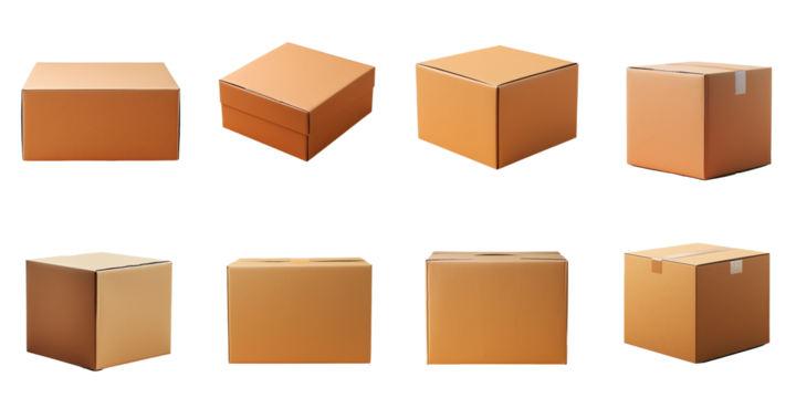 Transparent background brown cardboard boxes arrangement