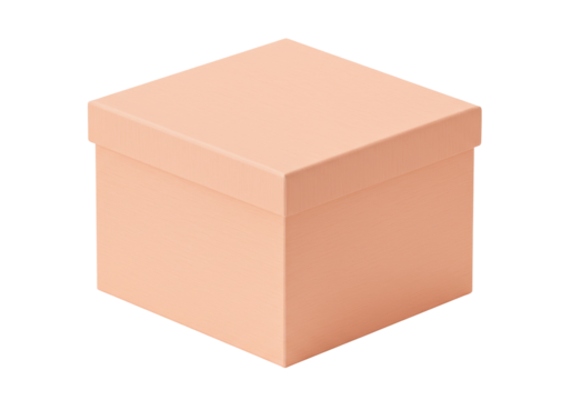 Peach-colored square box with lid isolated PNG, gift container for presents and storage on transparent background