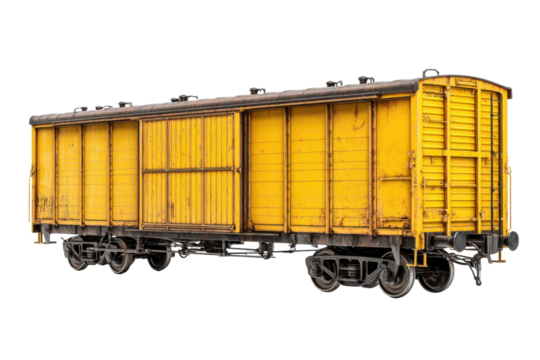 Yellow Vintage Boxcar Freight Car on Transparent Background
