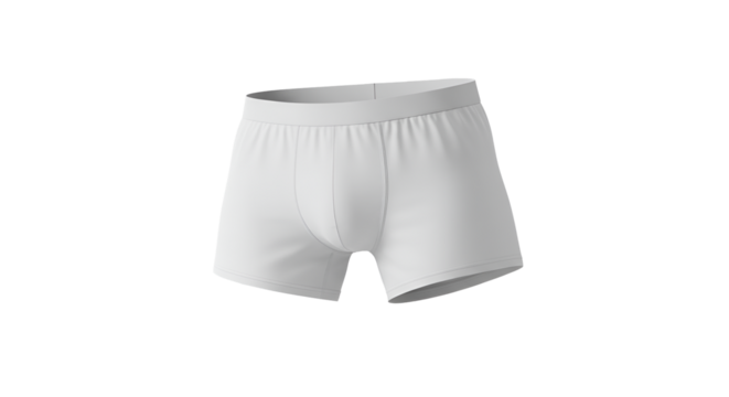 Sleek presentation of white men's underwear or boxer briefs against a transparent background, suitable for clothing mockups or fashion design purposes.