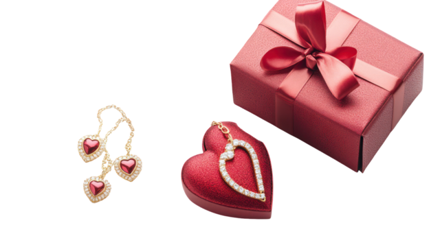 Valentine's day jewelry gift set, red heart earrings, pendant necklace, gift box