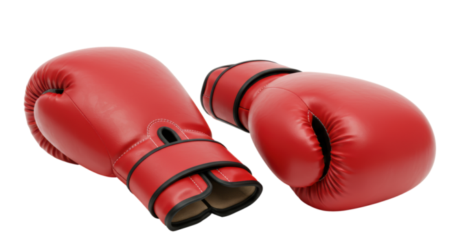 Red boxing gloves on transparent background close up