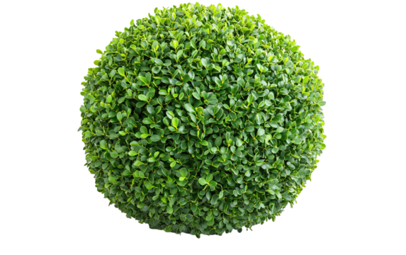 Perfectly manicured round green boxwood bush isolated on a transparent background