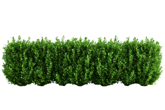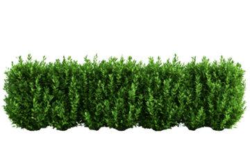 Green boxwood shrub fence isolated on transparent background.