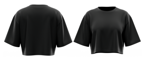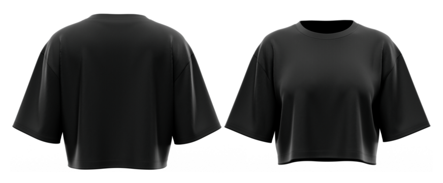 Crop T-Shirt Short Sleeve Boxy Fit Top for Women, Minimal Casual Wear, High-Quality Product Mockup Ready, Black