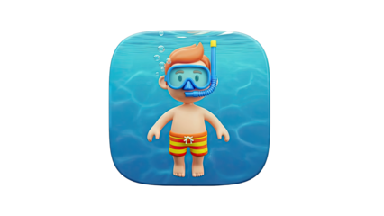 Cartoon Boy Snorkeling Underwater with Bubbles