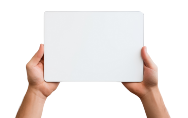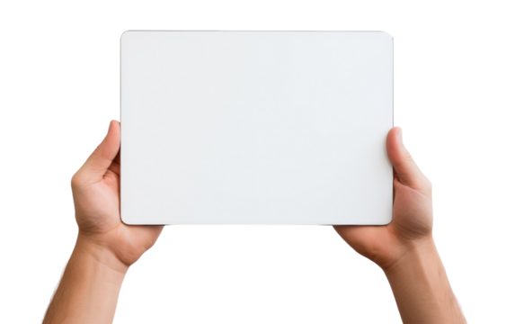 Hands holding tablet silhouette illustration on transparent background
