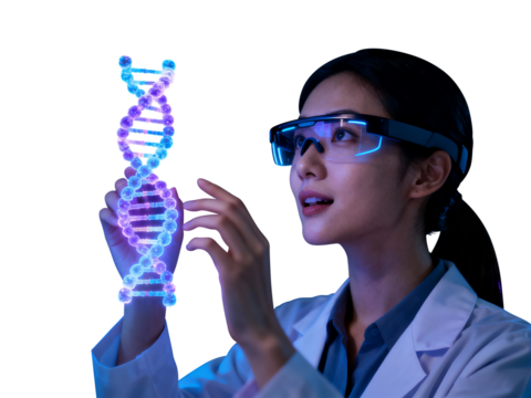 A female scientist in a futuristic lab, wearing sleek glasses transparent background