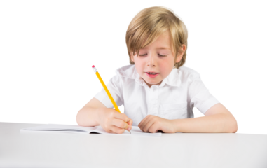Transparent background kids focused on writing at table