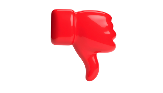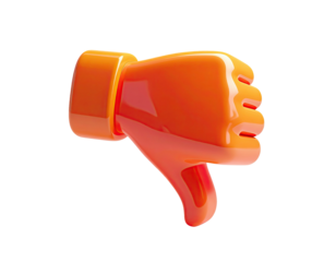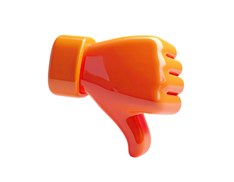 A glossy, orange 3D render of a hand giving a thumbs-down gesture
