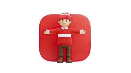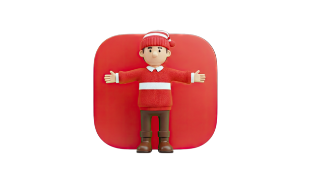 3D Character in Red Christmas Sweater and Hat