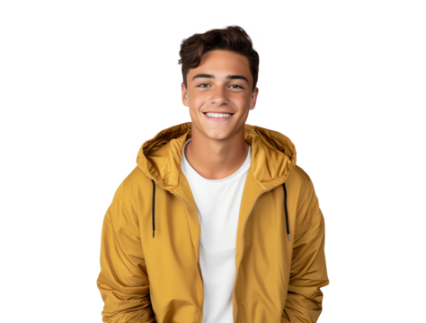 portrait of cheerful teenager boy smiling with casual attire, friendly young guy