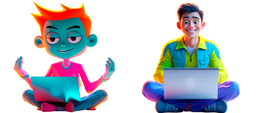 3d icon of cartoon boy waving hello at laptop isolated on transparent background