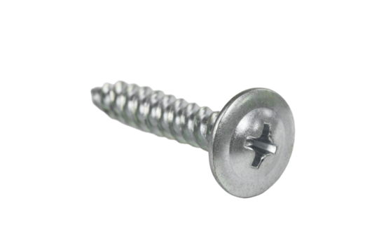 screws and self-tapping screws made of white metal, isolate on a white background, space for text