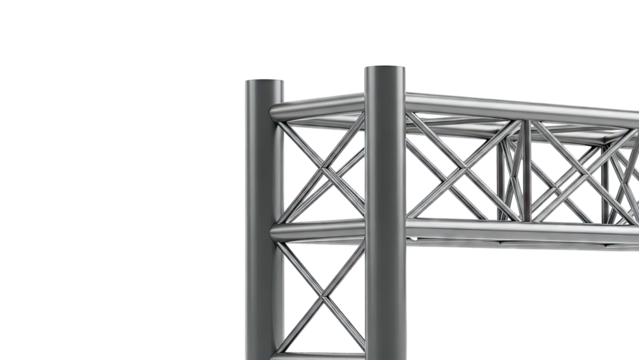 A textured galvanized steel bracing rod with hook bends, isolated on a transparent background under dramatic high-contrast studio light. Concept of industrial precision