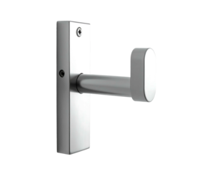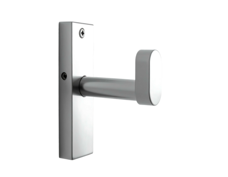Sleek, modern metallic wall hook with rounded end, attached by screws