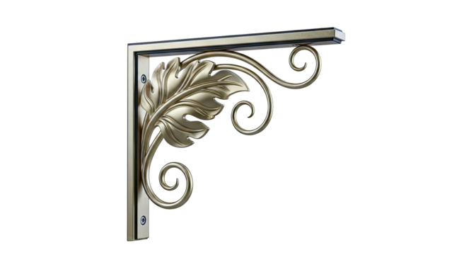 Elegant gold and green shelf bracket featuring a scroll design on a transparent background, ideal for classic interior decor and architectural details