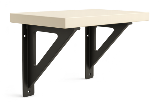 Modern wall mounted shelf isolated on transparent background, bracket design