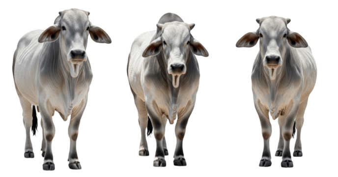 Resilient Brahman cattle in grey or red ideal for warm regions isolated on transparent background