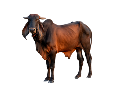Resilient Brahman cattle in grey or red ideal for warm regions isolated on transparent background