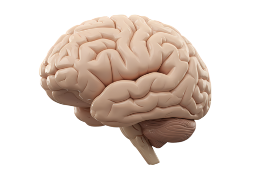 Human Brain Anatomy 3D Model Neural Networks Cream Color,, isolated on a transparent background