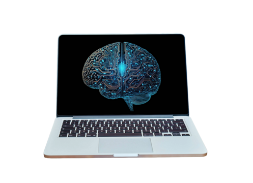 Brain theme is display on laptop screen. isolated on a transparent background.