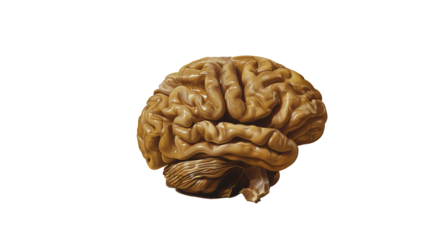 brain in the shape of a walnut, brainstorming. PNG object isolated on transparent background, mockup, design, template, layout, sticker