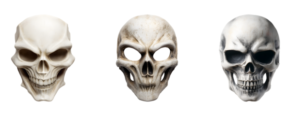 Human Skull Collection isolated on a transparent PNG background, white background, cut out