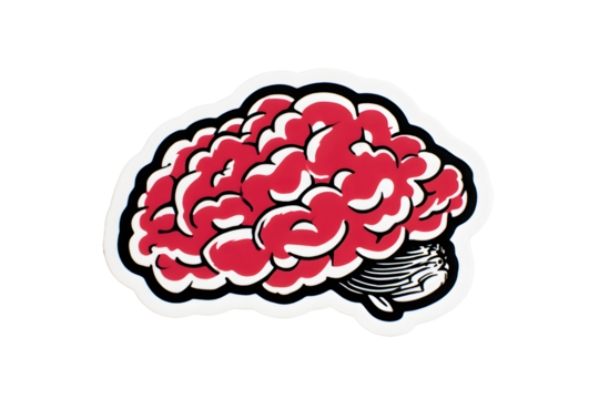 Human red cartoon brain halftone collage element isolated on cut out PNG or transparent background. Design element in trendy dotted pop art style. Illustration with vintage grunge punk cutout shape.