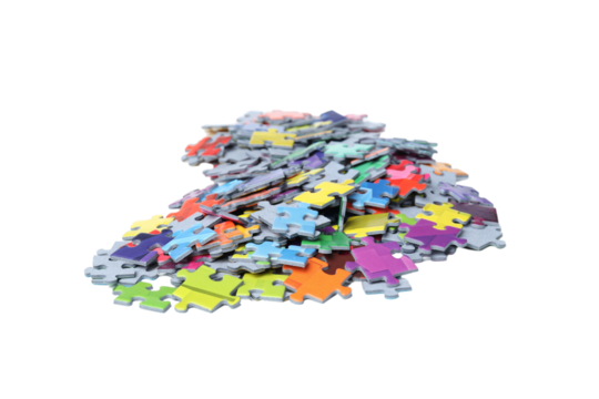 Colorful puzzle pieces on transparent background for health and support concepts