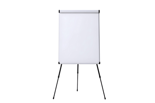 Blank whiteboard on easel stand for presentation isolated on transparent background