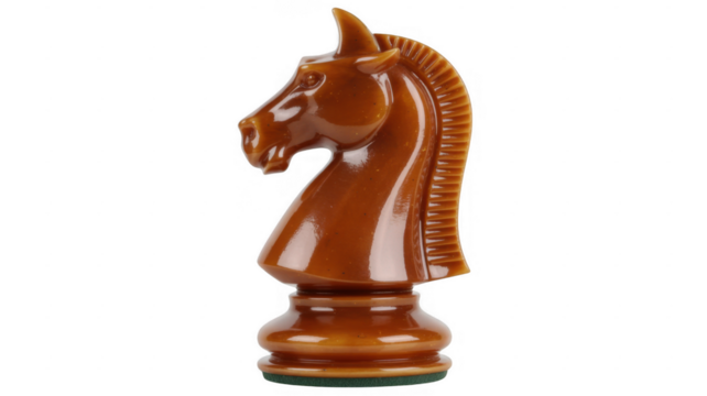 Dark brown chess knight piece with shiny surface dark brown chess piece isolated on a transparent background
